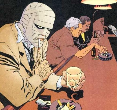 HOLY SHIT! this arc starts with subtle props to Shoot the Piano Player (which i also just recently read), then begins a standard noir pretzel plot with a private detective getting out of the hospital with his head in wraps (a cool touch) and some clever dialogue, BUT the last 10 pages of the 4th issue in this arc is exactly why comics RULE: back and forth frames showing the perspective of two men with concealed guns across the bar of a crowded diner locked in a non-verbal battle of wills, so-to-speak. then again a few pages later, a great cliffhanger where a seemingly minor macguffin connects this arc to the main plot, foreboding all hell breaking loose. big picture: i still don't know much more than i did, and honestly, i'm now afraid that there's too many 'minutemen' that are too similar, and there's not going to be enough depth to set them apart once this story finally reveals something. but i'm way down for some more awesome scenes like these along the way.