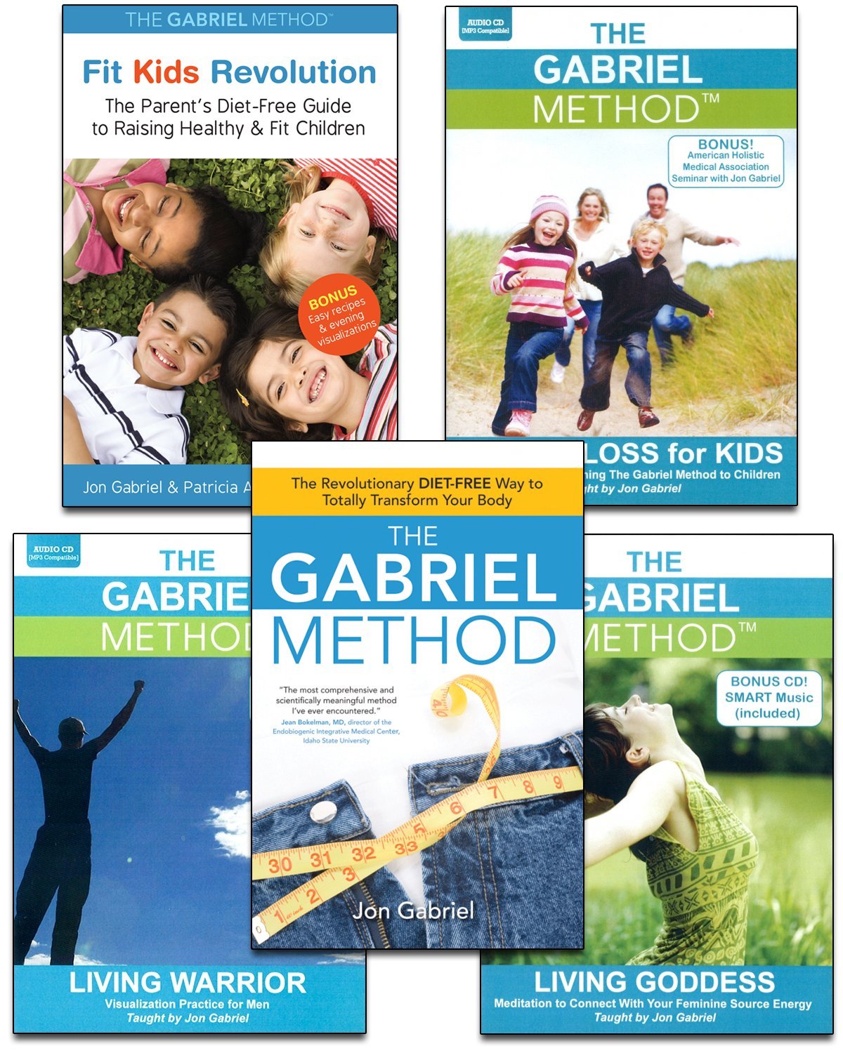 Join the movement for permanent, sustainable, weight loss! What started out as a best selling book, The Gabriel Method has now become an international movement for health, well-being and diet-free sustainable weight loss. Transform your entire family with this special bundle the original "The Gabriel Method" book, Jon Gabriel's brand new book "Fit Kids Revolution", and the 2-CD audio sets "Living Goddess", "Living Warrior" and "Weight Loss for Kids". In "The Gabriel Method" book, author Jon Gabriel uses his own remarkable transformation—from 409 pounds to 184 pounds—to show the solution to changing the inner belief systems that keep our bodies from thin. Like The Secret for weight loss, but with a 'green'/organic approach, The Gabriel Method works for anyone, any time. By adding back in the nutrients our bodies crave, and learning how to really listen to ourselves, we switch our self-destructive patterns to ones filled with health, joy, and a new, slim body. Jon's newest book "Fit Kids Revolution" is a guidebook for concerned parents who want to help their child overcome childhood weight gain and obesity in a fun, safe, and sustainable way. With children, restrictive dieting and traditional fitness programs are not just ineffective, they are potentially harmful, both physically and emotionally. Using a mind-body, holistic approach, you'll learn how to work with your child and your child's changing body to create lasting change from within. This bundle includes these 2 life-altering books, as well the audio CD sets "Living Goddess", "Living Warrior", and "Weight Loss for Kids".