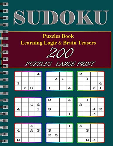 Sudoku 200 Puzzles Learning Logic & Brain Teasers Puzzles Books Easy, Medium, Hard, and Very Hard Size 8.5" x 11"(21.59 x 27.94 cm) All solutions are on the back of the book.