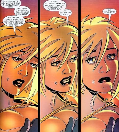 The origin of Power Girl definitely needed to be addressed and resolved. The origin of her "boob window" on the other hand, didn't require such a detailed (and surprisingly heartfelt) explanation.
