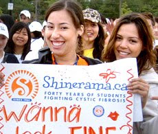 For pretty well as long as I can remember, one of the hallmarks of the beginning of the academic year is the rather hyper presence of brand new university students accosting passers-by for Shinearama as part of their freshman week. In the early days, they actually shined your shoes to raise money for the Canadian Cystic Fibrosis Foundation. I had a favourite pair's colour permanently changed due to an over-enthusiastic Shinearama participant wielding so-called neutral polish. Now, they just bounce up and down a lot and chant. I throw loonies in the collection box and get high-fives from students for the rest of the day when they spot my sticker. The Resident Fan Boy resists, but I toss in another toonie and firmly press the sticker to his chest: "You're doing it for my cousins," I tell him.