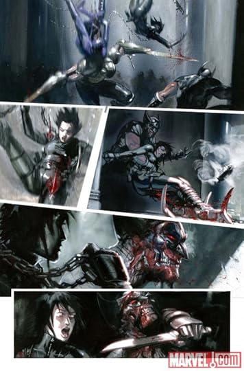 Now this was fun! Domino double crosses both the Assassin's Guild and the Hand and talks Wolverine into helping her escape both groups. It felt like one of those romantic, crime spree movies like True Romance or Natural Born Killers. Gabriele Dell'otto's art is perfect for the series. It gives off this kinetic energy amidst a fever dream.