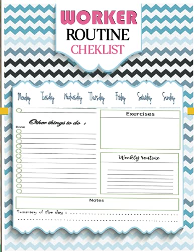 worker routine checklist: achieve all your goals and spectacular results. Save time, get good results by using this productivity tool. Work accessory to boost your productivity.