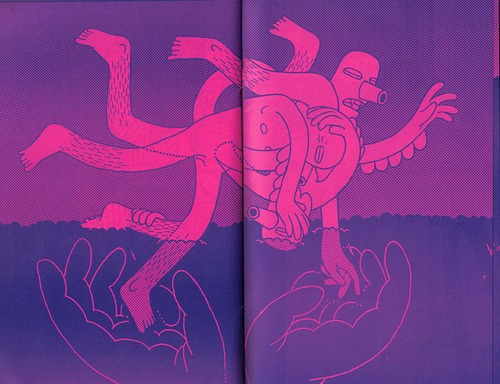 I'm not really sure if such an open-ended designation as "series" for a pile of mini-comics really makes sense on goodreads (oh wait, it's gone anyway), but these are strange, and beautifully designed, and awesome enough that I'm going to rate them here anyway. The fifth volume has just arrived, and it's a particularly gorgeous example of extending simple two-color printing via various inventive patterning and dot gradients, all to illustrate the furthest bizarro stages of Gaylord Phoenix's continuing search for identity in an always lavish, sometimes incomprehensible, and often vaguely threatening universe of geometry and squiggles. Volumes 1 through 4 (no wait, it's all 6!) will soon be (have now been) collected in a single volume by the excellent people over at Secret Acres (who also printed Theo Ellsworth's Capacity, Eamon Espey's Wormdye, Ken Dahl's Monsters, all worth a look). But then you'd miss out on Edie Fake's neat silk-screened covers and some of the intricacies of the fantastic color photocopying (I just got the single-issue of 6 and it's gorgeous in ways the book really cannot be; see below). Either way though, really good.