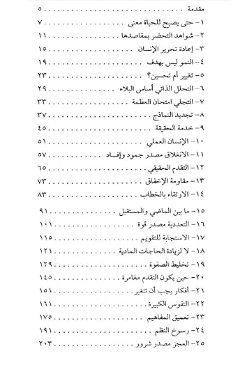 من الأفكار التي ناقشها الكتاب: - المعنى الحقيقي للحضارة، وكذلك للحرية - تصحيح المفهوم عن التغيير، وأنه ليس كل تغييرٍ تحسيناً - تعريف العقل المستنير - الحديث عن النجاح وشروطه، ومعيار وصف إنسان أو فئة بأنها فئة عظيمة (في نجاحها) - سمات الإنسان العملي - توضيح معنى التقدم في الرؤية الإسلامية - النقاط التي تساعدنا على الوقوف في وجه الإخفاق والهزيمة والتغلب عليها وكيفية التعامل معها - الحديث عن قضية تعدد الآراء والتعامل معها - نقض نظرية النسبية الفكرية (باختصار)