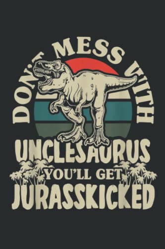 Don't Mess With Unclesaurus You'll Get Jurasskicked Dinosaur Notebook. Notebook. This paperback notebook is 6" x 9" (letter size) and has 110 pages (55 sheets) that are wide rule. It's A Perfect Notebook - Perfect present idea for any gift giving occasion. - This is the perfect composition notebook for taking notes, writing, organizing, lists, journaling and brainstorming at school, home, office, and much more ... - Students, Teachers, Parents, Grandparents, Kids, Boys, Girls, Youth And Teens As A Journal. - And more!