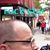 He breathes on his hands and rubs them together.