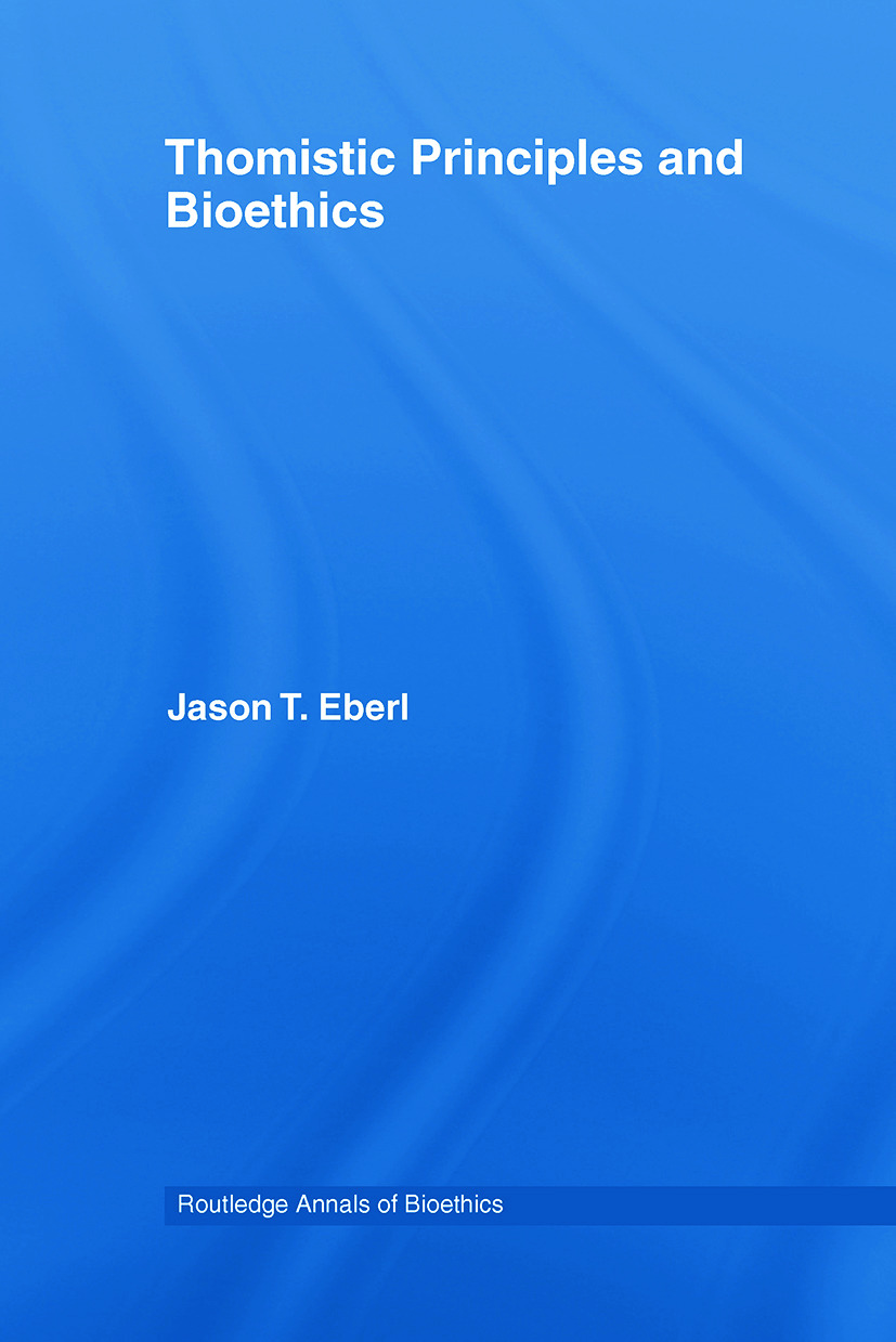 Thomas Aquinas is one of the foremost thinkers in Western philosophy and Christian scholarship, recognized as a significant voice in both theological discussions and secular philosophical debates. Alongside a revival of interest in Thomism in philosophy, scholars have realized its relevance when addressing certain contemporary issues in bioethics. This book offers a rigorous interpretation of Aquinas's metaphysics and ethical thought, and highlights its significance to questions in bioethics. Jason T. Eberl applies Aquinas's views on the seminal topics of human nature and morality to key questions in bioethics at the margins of human life - questions which are currently contested in the academia, politics and the media such - When does a human person's life begin? How should we define and clinically determine a person's death? - Is abortion ever morally permissible? How should we resolve the conflict between the potential benefits of embryonic stem cell research and the lives of human embryos? - Does cloning involve a misuse of human ingenuity and technology? - What forms of treatment are appropriate for irreversibly comatose patients? How should we care for patients who experience unbearable suffering as they approach the end of life? - What ethical mandates and concerns underlie the practice of organ donation? "Thomistic Principles and Bioethics" ""presents a significant philosophical viewpoint which should motivate further dialogue amongst religious and secular arenas of inquiry concerning such complex issues of both individual and public concern. It will be illuminating reading for scholars, postgraduate and researchstudents of philosophy, metaphysics, ethics, bioethics and moral theology.