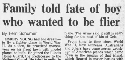 Chicago Tribune article on return of my uncle Emory Young's remains in 1983