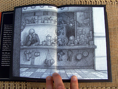 No es un libro al uso. Tras su apariencia de tocho de un millón de páginas, en realidad, se esconde una mezcla entre lo que se narra y lo que se ilustra de poco más de 500 páginas. No se puede decir tampoco que sea una novela gráfica, ni un libro ilustrado. Digamos que hay escenas que se narran y otras que se ilustran. Y no una ilustración cualquiera, podría decirse que la sucesión de las ilustraciones conforman casi como un boceto de cine.