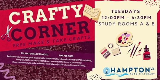 A passive crafting program for all ages! Rediscover your creative spark by joining the Hampton Public Library located at 4207 Victoria Blvd, Hampton, VA for an easy craft that you can make at the library or take home! Come to the library to make and take a fun crafty project for you and the whole family.