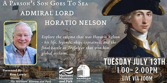 Join us on Zoom as we host a presentation by The Mariners’ Museum and Park on Admiral Horatio Nelson. A name as well-known around the world as Christopher Columbus, Napoleon, or even the President of the United States. How did this fame come to pass? Every leader must have a mixture of both arrogance and humility. Nelson certainly did. But these characteristics must be in balance. Nelson tended to show his humble, almost spiritual side in private or in close company for all his heroism. In public, he often became the quintessential “Master Thespian,” playing the hero’s role to the hilt! We’ll explore the enigma that was Nelson -- his life and the legends that surrounded him, the ships he sailed in, the conflicts and the battles lost and gained, the men in his life, and the women! And we’ll analyze and critique the final battle that won him global acclaim, Trafalgar.