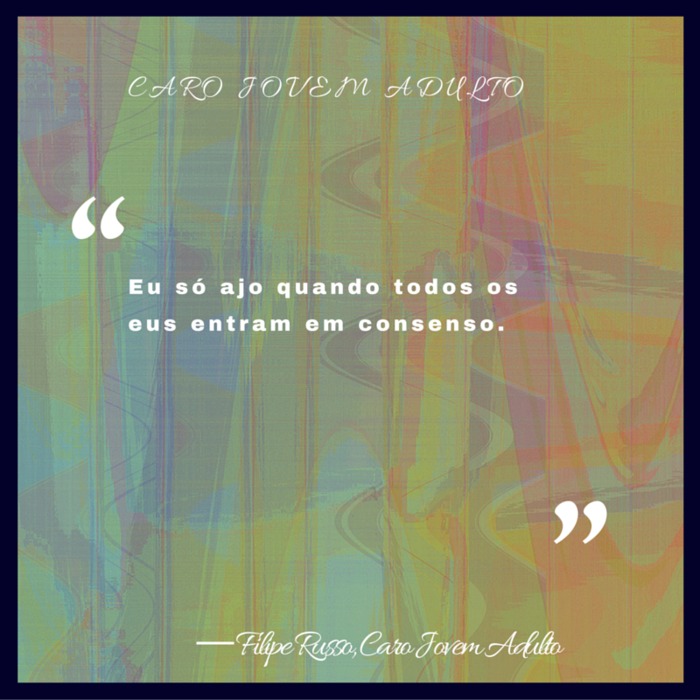 “Como agir sem pressupor? Sem arriscar um experimento à queima-roupa? Pra que viver sem expectativas? Sem a esperança de um prazer desinibido? Aspiro inspirações, inspiro aspirações e vivo elucidações líricas até expirar de vez o sopro de vida para longe, longe do meu peito. Quem sabe até tuas mãos.”