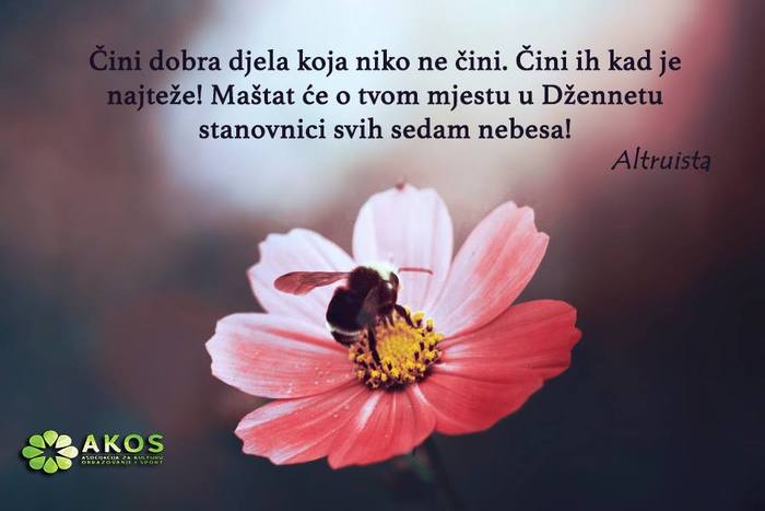 “Čini dobra djela koja niko ne čini. Čini ih kada je najteže! Maštat će o tvome mjestu u Džennetu stanovnici svih sedam nebesa!”