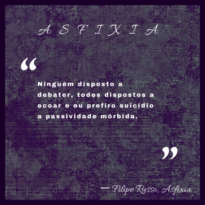 “Ninguém disposto a debater, todos dispostos a ecoar e eu prefiro suicídio a passividade mórbida.”