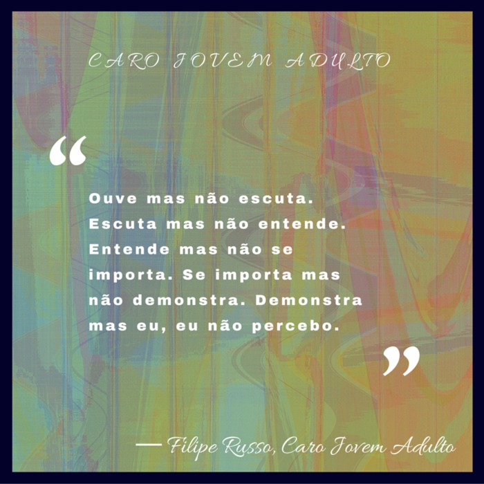 “Ouve mas não escuta. Escuta mas não entende. Entende mas não se importa. Se importa mas não demonstra. Demonstra mas eu, eu não percebo.”