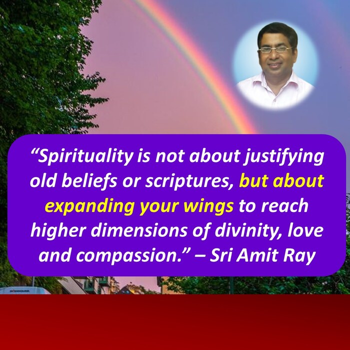 “Spirituality is not about justifying old beliefs or scriptures, but about expanding your wings to reach higher dimensions of divinity, love and compassion.”