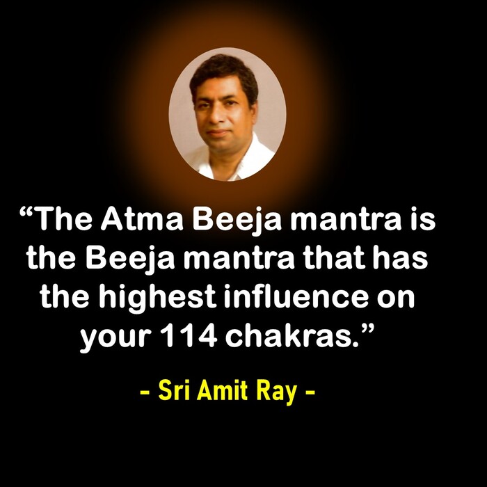 “The Atma Beeja mantra is the Beeja mantra that has the highest influence on your 114 chakras. It is selected based on your prakriti (spiritual nature), vibrations, breath, voice, and the higher energy connections.”