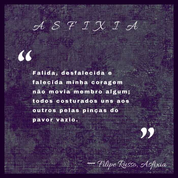 “Falida, desfalecida e falecida minha coragem não movia membro algum; todos costurados uns aos outros pelas pinças do pavor vazio.”