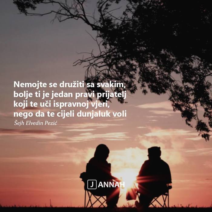 “Nemojte se družiti sa svakim, bolje ti je jedan pravi prijatelj koji te uči ispravnoj vjeri, nego da te cijeli dunjaluk voli.”