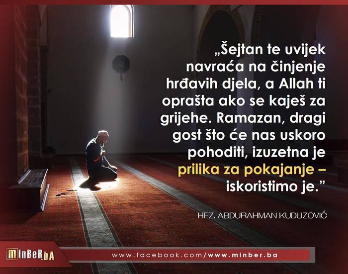 “Šejtan te uvijek navraća na činjenje hrđavih djela, a Allah ti oprašta ako se kaješ za grijehe. Ramazan, dragi gost što će nas uskoro pohoditi, izuzetna je prilika za pokajanje – iskoristimo je.”