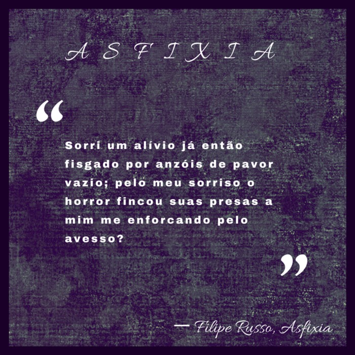 “Sorri um alívio já então fisgado por anzóis de pavor vazio; pelo meu sorriso o horror fincou suas presas a mim me enforcando pelo avesso?”