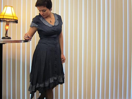 She has bright hazel green eyes that can compose an innocent glance to a deadly glare. Her skin is a soft pale that despite her vampirism has managed to retain some color to her cheeks. Creating a youthful and rosy complexion. Her lacy raven black hair is most often tied back in a single braid that hangs over her shoulder and mostly only captures the ends of her hair, leaving many loose strands that most often fall forward to curtain her face. When exposed to light her hair seems to shine a dark crimson despite its obvious jet black color. She has defined cheek bones that give her an intimidating aura to her when needed. She is most often wearing a dotted dress that has worn and dulled over the years but has not lost its beauty despite (view spoiler). She also wears a thin grey shawls with intricate designs worn into the cloth. One of her more defining features is her constant bare feet, her refusal to wear them is one of the attributes that still remains of her humanity.