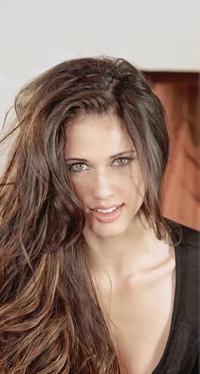 long black silky hair outgoing and nice/caring athletic,and startling light blue eyes