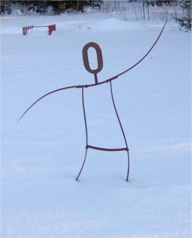 The whimsical nature of farm sculpture lends itself well to Winter. In the Summer this life size figure made of old carraige springs looks like it's playing ball with a slightly smaller figure across the blueberry patch. Now it looks like me if I stray off the trails...