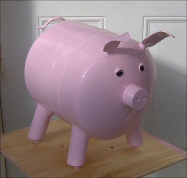Just finsihed today! We're due for a few days of precipitation, though the last two "six inch" snows were only 1/4 inch...I did NOT want to plumb my ex's house, unfortunately all the plumbers gave her ridiculous estimates.. $1700 to $2000 per fixture for two sinks and a toilet on one wet wall, without the sinks and toilet! (in southern Maine I had a basement water heater, utility sink and washer hookup as well as two sinks, a shower , a toilet and a gas line on the a third floor plumbed for under $4000, so $5000 to $6000 for three fixtures was insane!) Consequently I did the plumbing.. and it even passed inspection! Yet three years later it seems the metal plumbers tape I used to mount the expansion tank collected the condensation and the expansion tank developed a pinhole. Well, since the ex could buy 70 or 80 more expansion tanks with the money she saved hiring me I didn't feel guilty, though I didn't charge her for labor to put in a new tank (simple screw in job!). And the old tank? Poor plumbing produces plump pink piggies!