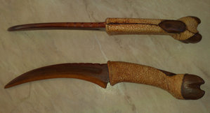 Weapon of choice- Her very own bow and arrow in which she made; bright orange leaves and a flexible body.