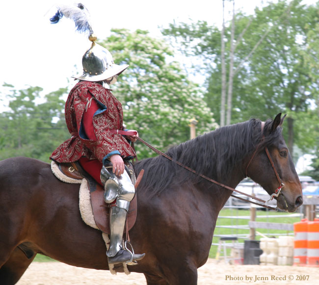 Thank you. I have found some information on the main Living History page. Also I have read that the Frisian is similar to the extinct destrier. It seems that strong hind-quarters were a must since the mount had to pivot easily and manoeuvre in close quarters during battle. Fifteen hands sounds good. I think in later centuries they were a little larger, maybe up to sixteen and a half hands. This is a fascinating link; I truly appreciate it. ;)