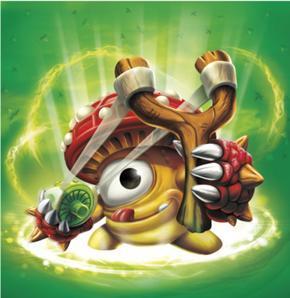 Shroomboom was most unfortunate to have been born in a pizza topping garden belonging to Kaos. Growing up among his fellow fungi, he knew it was only a matter of time before a late night craving would bring about their demise. So Shroomboom took a twig and a strand of spider web and made a slingshot. One by one, he launched all of his friends over the garden fence before flinging himself over to join them. Then he guided them all to the edge of the island and leapt to freedom, using his mushroom cap to catch a friendly breeze. Now as a member of the Skylanders, Shroomboom continues to perform courageous deeds... but he can be hard to find on pizza night.