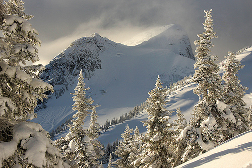 surrounding // VICINITY 」 Majority of Bruno L'overture's territory takes up the mountains, which is located toward the edge of the woods and due to its higher altitude, the snow here is almost year long, but Bruno likes it that way given individuals ( especially humans ) often dislike the cold and rarely wander this way. In addition, humans mainly come to the woods to collect delicacies like berries and herbs. One will not find any berries in this cold, nor will they find much herbs.