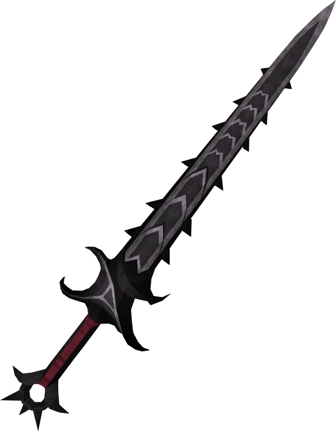 Edme appears and starts to look at the swords picking up an evil looking sword (looks like this: