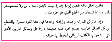 ٣- تكلم عن اسباب التخلف المجتمع الإسلامي الذي اصبح يهتم بالشيء اكثر من الافكار و انه اصبح يريد الرجوع لعصر النهضة الاسلامية لكن بأفكار غربية الذي أدى الى ازدواجية اللغة والكثير من الخلافات ..
