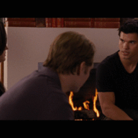 Jacob smiled at Eliza when she greeted him, nodding to her, "Hi Kitten." He remained silent while his dad finished up talking to Eliza, Jake was sure he would hear about this plenty when she returned to her house. When she scooted past him and his dad, Jacob looked back when she shut the door to his bedroom loudly and then looked back to his dad who's expression was completely unreadable. From what Jake could tell, Billy was in deep thought, but that was about all that was readable. It was hard to tell whether the man was angry, upset, or simply emotionless. After a moment of tense silence, Billy wheeled his chair to the living room and settled into his corner of the room. A heartbeat after Eliza emerged from Jacob's bedroom now sporting a pair of his sweatpants that were much to big for her. Jacob smiled at her and was surprised when she pushed him on the couch, saying that his hair was a complete mess. "You should see your hair," he replied and snorted lightly.