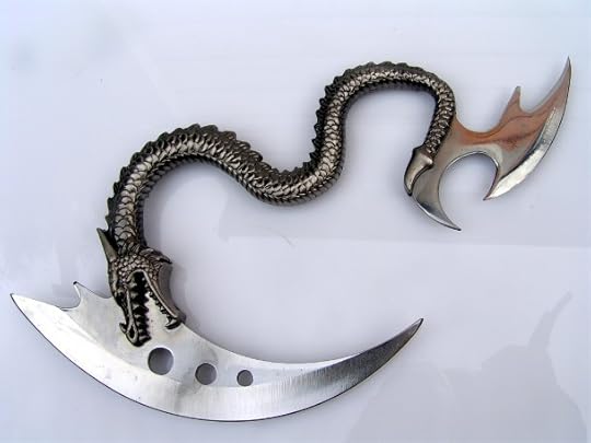 The dark blade was setting on her bed when she came to camp with a note on it. It was a gift from her father as an apology for not remembering her until a later age. To raven she has no idea how to use it or what to do with it.