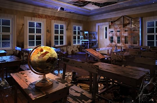 She entered to see another student sitting quietly and reading a textbook. Gilden was over by a wall, seemingly doing some repairing work.