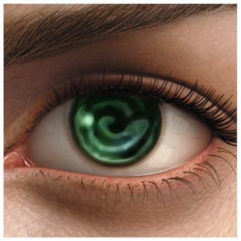 (color) She has green/blue eyes.