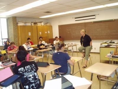 This is the classroom where the young students in elementary school must spend their time learning the elementary skills of English.