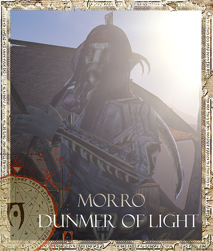 Background: A young Dunmer, he is quite obtuse most of the time. He's a skilled fighter and magicka user. His father is a Dark elf lord of Morrowind, and Morro was taught the ways of magic by his father. However, he was brutally trained to the point of torchure and ran away at 15 with some of his father's money. He took up Necromancy as a way to spit in his father's face (wizards hate necromancers), and rebell against the person who he hated so.