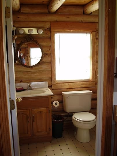 This is a simple bathroom with a toliet and a sink. You can't take a shower in this bathroom or a bath, making it half of a full bathroom. It is located at the end of the hall.