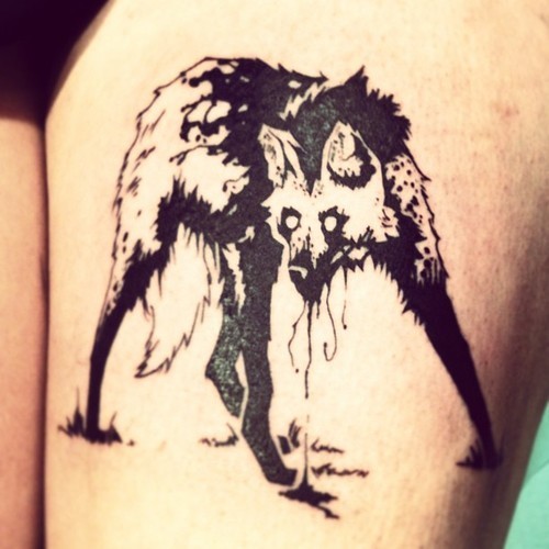 Distinguishing Marks: Tattoo of a Hell-hound.