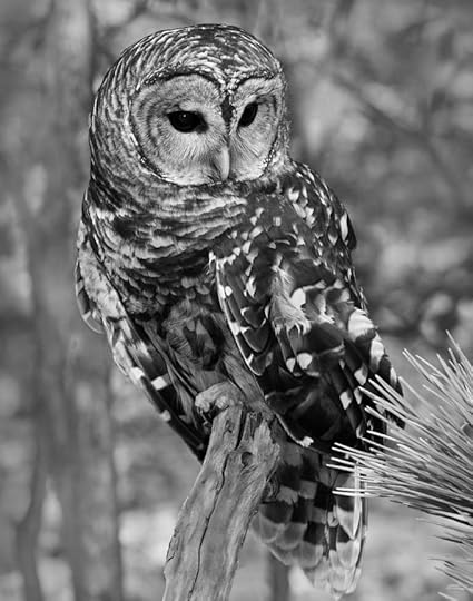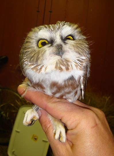 » Description: Kerra is a small little owl, light brown in color, with white and a few reddish feathers tossed into the mix. She has a golden beak and golden-brown eyes. She is quite fluffy and is only about half as big as she looks. She is very sweet, with a soft hoot and a weakness for being scratched on the back of the neck just so. She is shared by Ayden and Jinx.