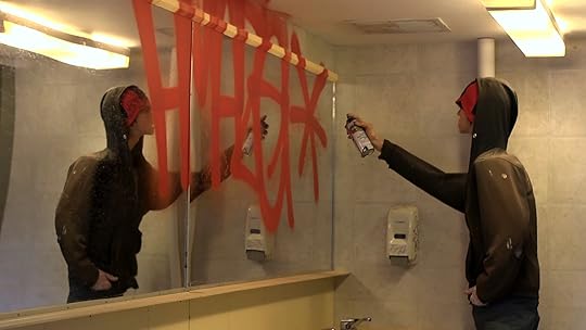 ☺ Vandalism. He loves to paint with spray cans and even with paint brushes and paint. He sketches sometimes, but he's mostly a painter.