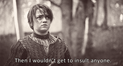 Arya: "The Septa says I have to do it again. My clothe's aren't properly folded, she says. Who cares how they're folded? They're going to get all messed up anyways."