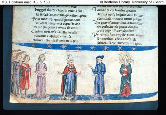 janet wrote: "The reference that Reem found on Rahab and women in the Biblical tradition and their sins being used to show how people can be saved is very intriguing. Ciardi suggests this same reason as the one ..."Musa is not as humorous as Ciardi! On Cunizza Musa's comment also mentions her four husbands and two lovers (^^) and explains her rise to Paradise as follows: "After the death of her fourth husband, she went to live in Florence, where she freed the slaves of her father and brothers in 1265. According to early commentators of the Comedy, during her later life Cunizza was known for her acts of compassion and mercy."