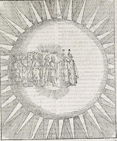 In the accommodation of Heaven to the senses of the pilgrim, which stands also for the accommodation of the poet's experience per verba to us, Dante was following the pattern of the Bible, the eternal witness of God's accommodation--his Word--to man. "The extended metaphor of the Paradiso, established by the command performance of the elect for the benefit of the pilgrim, is in fact a poetic reconciliation of the Platonic myth of the stellar souls with the Christian conception of Heaven." The stellar dance of the "spiriti sapienti who have descended to the Heaven of the Sun for the pilgrim's edification has ancient Zodiacal origins: it occurs, for example in a passage adduced from the apocryphal Acts of John (confirmed by Apoc. 12:1) and is related also to a sketch in the pavement of the Baptistery in Florence.