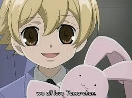 personality: is considered a "boy lolita" or "loli-shota;" basically, an older boy who is attractive to girls because he is child-like and cute. Honey, himself, loves cute things and indulges in sweets of cake and candy on a near-constant basis; this, despite being smaller than average for his age and a martial arts champion. He is a perennial optimist with an innocent approach to life that makes him appear to be more like an elementary school student instead of a 3rd-year high school student. Although he often appears dimwitted, Honey is actually highly intelligent and clever. Despite his generally positive nature, he angers easily when awakened from slumber and since his blood type is AB, most of the students believe that he has a split personality (i.e. Dark/Nice Honey).He is adoring of his stuffed bunny, Usa-chan, as it was made just for him by his late grandmother, and he harbors an insatiable appetite for sweets and cake, admitting that he eats three whole cakes for dessert every evening after dinner. When he acts all cute and adorable, he can easily make girls squeal. He sometimes is referred to as Tamaki's younger brother since they look so alike. he is mostly seen riding on the shoulder of his best friend / cousin Takashi Morinozuka (Mori).